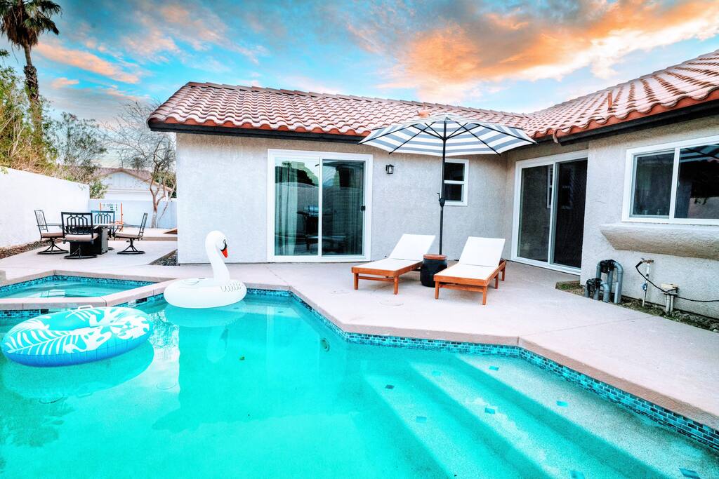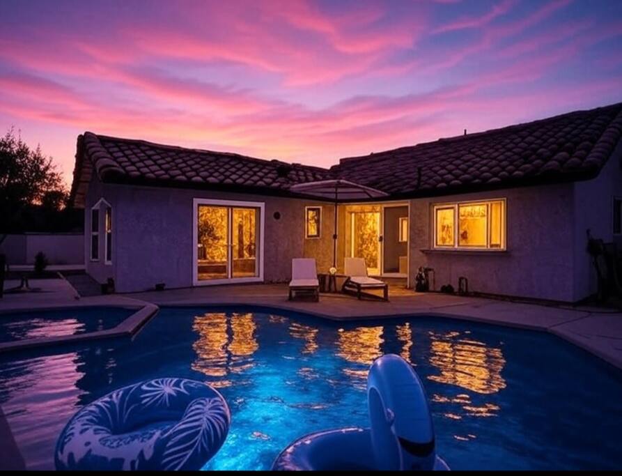 🏜️ Welcome to Indio! Your dream desert escape awaits! This spacious 3-bedroom home is designed for families, friends, and companions to relax and unwind. 🌵✨ 🏠 The Space: 🛏️ Bedroom 1 – King Canopy bed, ensuite bathroom, 55" RokuTV, black-out curtains and peaceful vibes 🛏️ Bedroom 2 – King bed, 55" Roku TV, black-out curtains and perfect for a restful night’s sleep 🛏️ Bedroom 3 – Full-over-queen bunk, 55" Roku TV, black-out curtains - perfect for families and kids 🛋️ Cozy Living Room – Kick back with plenty of seating for the whole family, a large 65" Roku TV, and plenty of space to gather 🎱 Game Room – Challenge your crew to a round of pool or enjoy fun games 🏊 Private Pool – Take a dip, soak up the sun, and enjoy the desert breeze. Pool heating is optional for an extra fee, best for the cooler months (October–May) when the water needs a little warmth. The fee covers the high energy costs we pay to keep it cozy, and we pass it through for transparency. Let us know if you’d like to include it or have any questions! 🌟 What You’ll Love: ✅ Family friendly 🫶🏼 ✅ Fast WiFi & Smart TVs 📺 ✅ Fully stocked kitchen 🍳 ✅ Outdoor lounge area 🌞 ✅ Grill & Fire pit for family gatherings 🔥 ✅ Close to local trails, shops, & attractions 🌵 Nearby Attractions: Empire Polo Club – Home to the famous Coachella Valley Music and Arts Festival, just a short drive away. 🎶 Coachella Valley History Museum – Dive into the rich history of the area. 🏛️ Shields Date Garden – Experience the unique garden and indulge in their signature date shakes. 🏜️ Indio Hills Palms – Explore scenic trails and discover the beauty of the desert landscape. 🌴 Local Golf Courses – Tee off at nearby courses offering stunning views and challenging play. ⛳ Book your perfect desert getaway today! 🌅✨
