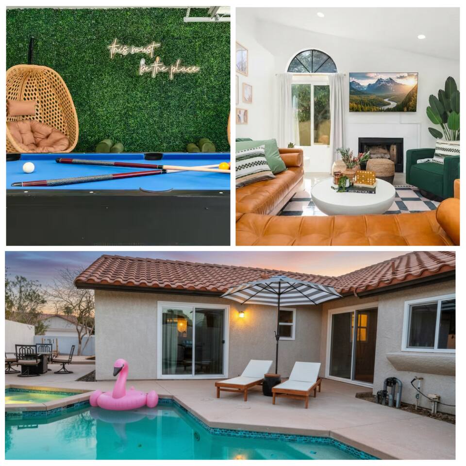 🏜️ Welcome to Casa Luzia in Indio! Your dream desert escape awaits! This spacious 3-bedroom home is designed for families, friends, and groups to relax and unwind. 🌵✨ IG: tag us at @_casaluzia 🏠 The Space: 🛏️ Bedroom 1 – King Canopy bed, ensuite bathroom, 55" Roku TV, black-out curtains and peaceful vibes 🛏️ Bedroom 2 – King bed, 55" Roku TV, black-out curtains and perfect for a restful night’s sleep 🛏️ Bedroom 3 – Full-over-queen bunk, 55" Roku TV, black-out curtains - perfect for families and kids 🛋️ Cozy Living Room – Kick back with plenty of seating for the whole family, a large 65" Roku TV, and plenty of space to gather 🎱 Game Room – Challenge your crew to a round of pool or enjoy fun games 🏊 Private Pool – Take a dip, soak up the sun, and enjoy the desert breeze. Pool heating is optional for an extra fee, best for the cooler months (October–May) when the water needs a little warmth. The fee covers the high energy costs we pay to keep it cozy, and we pass it through for transparency. Let us know if you’d like to include it or have any questions! Heated pool available for small fee. Bring your loved ones & enjoy the best of the desert! 🔥Firepit Ignite unforgettable evenings around our cozy firepit, a 🌟 What You’ll Love: Family friendly Fast Wi-Fi & Smart TVs Fully stocked kitchen Outdoor lounge area Saltwater Pool & Spa Grill & Fire pit for family gatherings Close to local trails, shops, & attractions 🌵 Nearby Attractions: Empire Polo Club – Home to the famous Coachella Valley Music and Arts Festival, just a short drive away. 🎶 Coachella Valley History Museum – Dive into the rich history of the area. 🏛️ Shields Date Garden – Experience the unique garden and indulge in their signature date shakes. 🏜️ Indio Hills Palms – Explore scenic trails and discover the beauty of the desert landscape. 🌴 Local Golf Courses – Tee off at nearby courses offering stunning views and challenging play. ⛳ Book your perfect desert getaway today! 🌅✨ 📍Location: Perfectly Located in the Heart of Coachella Valley. Casa Luzia offers easy access to many attractions! (Minutes in driving distance) 🎵 Festival & Events: 🎵🎵6 minutes to Empire Polo Club (Ave 49 & Monroe entrance) - Coachella & Stagecoach ⛳ Golf & Tennis: 🎾8 minutes to Indian Wells Tennis Garden ⛳ 8 minutes to La Quinta PGA West 🛍️ Shopping & Attractions: ✨15 minutes to Palm Desert - Living Desert Zoo & El Paseo Shopping District 🐎15 minutes to Desert International Horse Park 🌴25 minutes to Downtown Palm Springs 🌵35 minutes to Joshua Tree National Park (Cottonwood Springs Road Entrance)