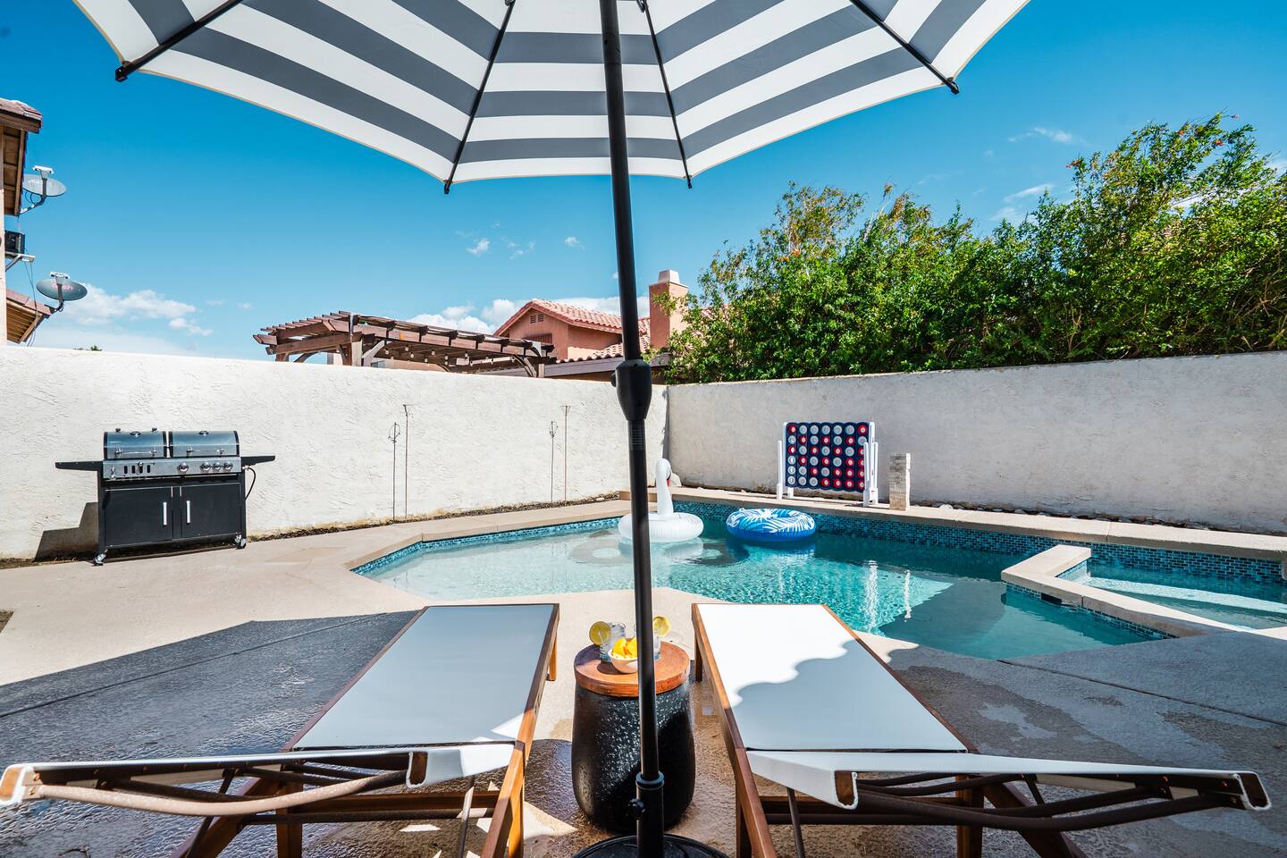We're so excited to welcome you to our home in the beautiful Coachella Valley! To make the most of your stay and help us keep this space feeling fresh and welcoming for every guest, please take a moment to review our notes: 2️⃣1️⃣➕ Guests are required by the city of Indio to be 21+ to rent on Airbnb 📞Contact us first with any questions or issues: We are a call or message away on the app. If something isn’t right, please reach out to us immediately so we can address it promptly. We’re here to ensure you have a comfortable and enjoyable stay. 💧 Please note: Guests are responsible for supervising children at all times while using the pool and spa. Use of these amenities is at your own risk. Our home includes pool alarms on all sliding doors to help families keep little ones safe. 👶 Traveling with young kids? We provide a Pack 'n Play and high chair for your convenience. Due to safety and hygiene reasons, guests must bring their own crib sheets and other baby items. 💨 Desert Winds & Dust Even though the house is professionally cleaned before and after each stay, desert dust can settle quickly-- especially after windy days. Please help us by keeping doors and windows closed when not in use. This keeps the A/C running efficiently and helps minimize dust and debris inside the home. 🪳 Natural Wildlife While the home is professionally cleaned and maintained with regular pest control, this is still the desert-- you may occasionally see bugs or critters, especially if doors are left open or food is left out. Keeping things sealed and tidy helps! We may occasionally rearrange decor or make small updates to improve guest comfort-- thanks for your understanding! Also, we're embracing the desert vibe🏜️ at our Indio home and conserving water by letting our front and backyard go natural with minimal grass. It’s a practical choice for sustainable living out here! :) Please note that pool, pest and gardening services may occur before, during, or after your stay, as needed, to maintain a great experience for your getaway and future guests. Be aware that these services could take place during your visit to ensure everything remains perfect. 🏠This is a home, not a hotel: Our property is a private residence, thoughtfully prepared for your stay. Please treat it with care and respect, as you would your own home. We're so excited to welcome you to our home in the beautiful Coachella Valley! We hope you love it as much as we do, and we’re always just a message away if you need anything!
