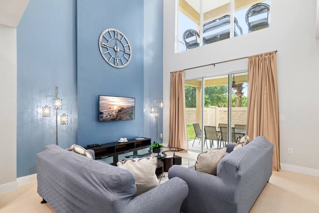 💗Accommodation Highlights:💗 ➡️ New 4 bedrooms and 4.5 bathrooms, ➡️ Spacious living room and beautiful kitchen ➡️Safe Location with great Amenities ➡️ Centrally Located to Kissimmee and Orlandos Top attraction. 💗Resort Amenities:💗 ➡️Dive into relaxation at Magic Village Yards, a luxurious gated community: ➡️ **Pool Paradise:** Enjoy the community pool & spa. ➡️ Access resort offerings like the gym, hot tub, pool and kids' playroom for $100 per day, by booking directly with the concierge. 💗Prime Proximity:💗 Unbeatable proximity to major attractions: ➡️Disney World Resort (5.6 miles) ➡️Universal Orlando (16 miles) ➡️SeaWorld (11 miles) 💗Easy Access and Safety:💗 ➡️Enjoy full access to the entire home, including the private parking spot and patio. ➡️Self check-in with a smart lock ensures a seamless start to your stay. ➡️ Peace of mind with exterior security cameras and comprehensive safety equipment. 💗Guest Considerations:💗 ➡️ Our space respects tranquility; smoking and parties are not permitted. ➡️ Starter toiletries are provided; however, feel free to bring your personal favorites for utmost comfort. Top Nearby Attractions: DISNEY Animal Kingdom – 3.4 miles Premium Outlet– 8.8 miles Celebration Golf Club - 5.8 miles Walt Disney World Resort 🎢✨ 5.6 miles Universal Orlando 🦖🎥 16 miles Gatorland 🐊🌿 10 miles. SeaWorld Orlando 🐬🐳 11 miles Kennedy Space Center 🚀🛸 64 miles Book now for an unforgettable journey through Orlando's magic and beyond. Should you have any questions, don't hesitate to reach out—I'm here to assist!