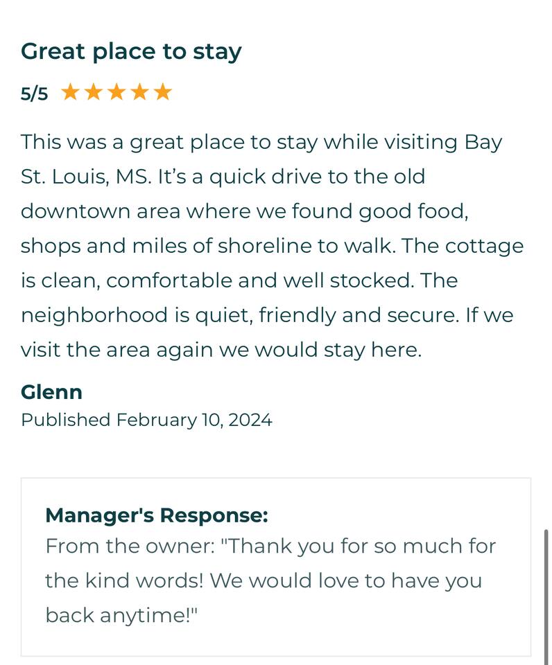 Nearby Attractions: Bay St. Louis Beach 🏖️ ~1 mile Hollywood Casino Gulf Coast 🎰 ~2 miles Alice Moseley Folk Art Museum 🎨 ~3 miles Buccaneer State Park 🌳 ~6 miles L&N Train Depot 🚂 ~3 miles Infinity Science Center 🚀 ~12 miles Waveland Beach 🌊 ~5 miles 💗The Space💗 💗Your Personal Sanctuary:💗 ➡️Bedrooms & Living Area: Unwind in the cozy master bedroom featuring a luxurious king bed, or in the stylish living room equipped with a full Murphy bed for additional guests. Bask in the warmth of a smart electric fireplace and dive into a selection of board games or streaming services on the Smart TV. ➡️Bathroom Bliss: Elevate your self-care routine in a bathroom that exudes luxury, complete with a walk-in rain shower and a magnificent free-standing deep soaking tub. ➡️Epicurean Delights: Culinary enthusiasts will find joy in the fully equipped kitchen, fitted with modern appliances and cooking essentials. It’s perfect for crafting a meal after a day of exploration. 💗Outdoor Haven:💗 ➡️Expansive Deck & Private Dock: Begin your day with tranquility on the spacious, well-designed deck or head to your private dock for a direct water adventure. Gear up with the on-site fishing equipment, grill a savory barbecue, or explore the scenic surroundings with available bikes. ➡️Kayaking Adventures: Launch your kayak directly from the property with ease, and immerse yourself in the serene beauty of coastal landscapes. 💗Convenience & Accessibility:💗 ➡️Parking: Benefit from ample space with free parking accommodating up to 5 vehicles, plus a 50AMP hookup for your motorhome, ensuring a seamless and comfortable stay. 💗Guest Recommendations💗 Guests have complete access to the home and its amenities, ensuring an experience that’s both private and enriching. 💗Safety Note💗 Please note the household rules regarding kayak and bike usage these are for your safety and enjoyment. Additionally, consider obtaining travel insurance, as we can't issue refunds for events beyond our control. Embark on an unforgettable getaway that fuses comfort, adventure, and serenity. Secure your slice of waterfront paradise today.