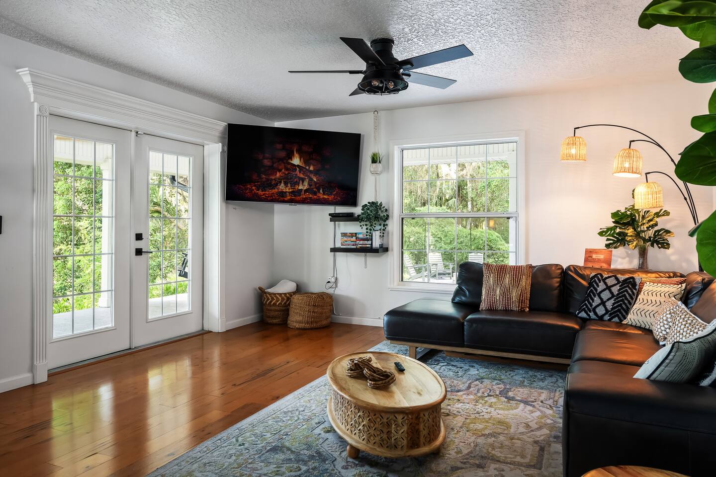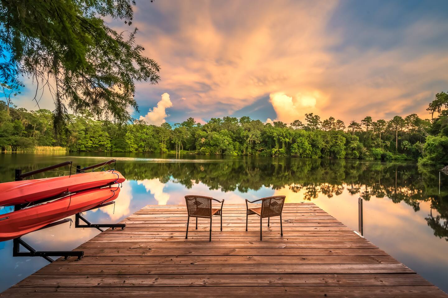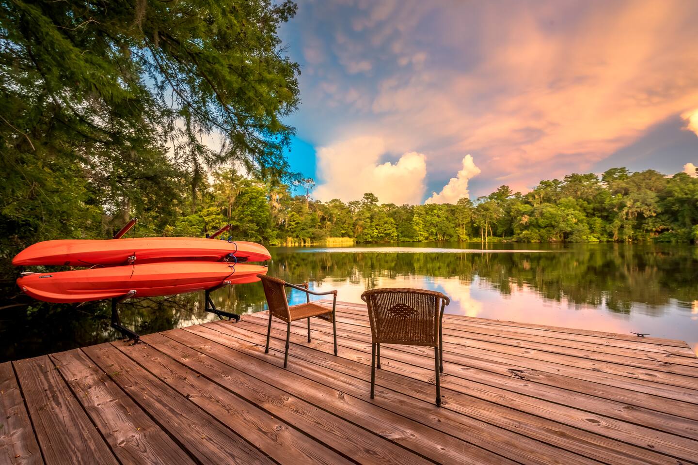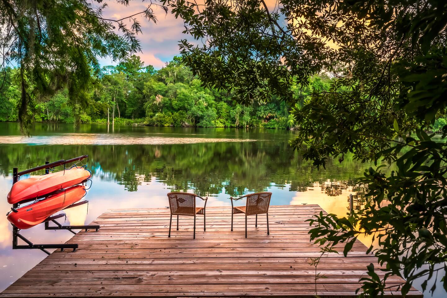 🌊Peaceful, polished, and just minutes from tubing and kayaking on Rainbow River. This stylish riverfront retreat offers views of the Withlacoochee, plush comforts, and open-air porch seating. Close to the Withlacoochee State Bike Trail, Crystal River’s manatees, and the prehistoric springs of Williston—including Devil’s Den. Whether exploring or unwinding, this is your serene base for natural Florida. Kayaks available + fire pit for relaxing evening under the stars.🔥