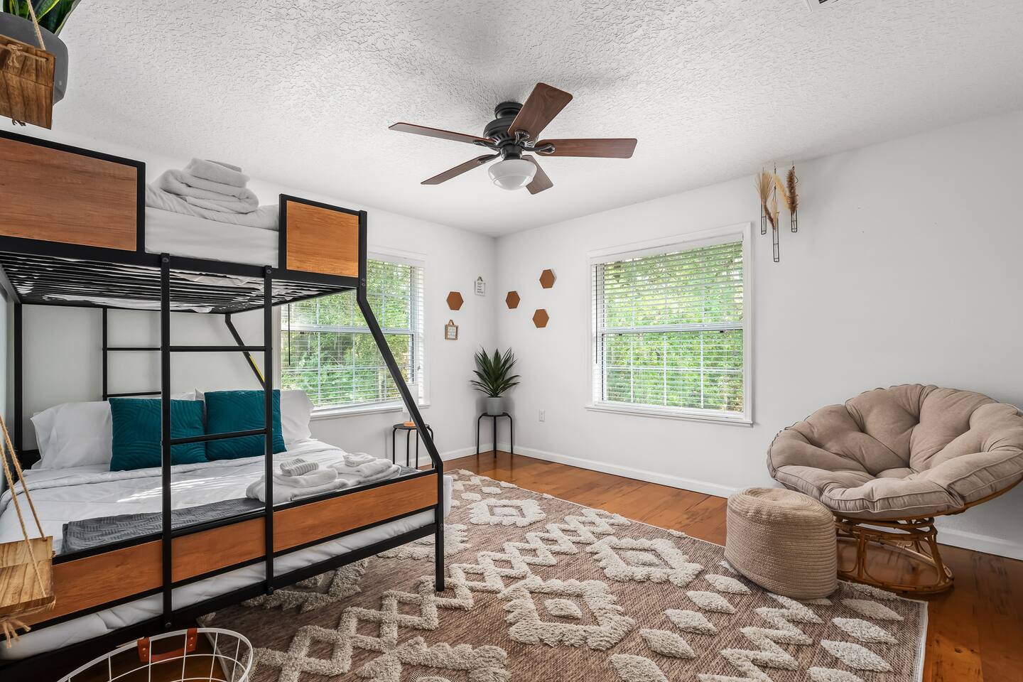 ❤️ Why Book with Us? ❤️ * Spacious and Modern House *Breathtaking views *Complimentary kayak and a short trip to Rainbow Spring* *Private, quiet with plenty of amenities * A memorable stay awaits friends and family with us Discover the perfect getaway at our charming waterfront retreat! Here's what sets us apart: 🌊 Immerse yourself in the tranquility of our riverfront haven, perfectly positioned for both relaxation and adventure. Nestled steps from the beautiful Withlacoochee River, this four-bedroom retreat offers an unparalleled connection to nature, coupled with modern comforts. 💗Living and Leisure:💗 Step into an inviting open-concept living area that seamlessly blends comfort with functionality. The media room, doubling as Bedroom 4, is equipped with a twin bed and a trundle, plus a nostalgic selection of video games. Perfect for families or groups seeking both shared and private moments. 💗Bedrooms and Bathrooms:💗 ➡️Master Suite: A serene escape featuring a luxurious en-suite bathroom with a spacious walk-in shower. ➡️Bedroom 2: Rest easy in a queen bed, with room-darkening shades for a restful night's sleep. ➡️Bedroom 3: Designed for versatility with a full/twin bunk bed, ideal for family configurations. The additional full and half bathrooms ensure convenience for all guests, with thoughtful amenities such as a bathtub for relaxation. 💗Outdoor Exploration and Relaxation:💗 Waterfront Activities: Embrace the great outdoors with complimentary kayaks and a private dock perfect for fishing or stargazing by the fire pit (firewood supplied). 💗Bikes and More:💗 Take our provided beach cruisers for a scenic ride on nearby trails or enjoy some friendly competition with our corn hole set. 💗Convenience and Comfort:💗 💗Family-Friendly Features:💗 Outfitted for families, we provide a high chair, Pack and Play, and a selection of children’s books and toys, ensuring a seamless experience for parents. 💗Modern Conveniences:💗 Our home is equipped with labeled cabinetry and switches, USB charging ports, and a cutting-edge security system including exterior cameras for peace of mind. 💗Important Considerations:💗 ➡️Waterfront Safety: While the kayak use is free, it’s important to note that swimming is off-limits, and the path to the water requires a descent that may be challenging for some. ➡️Pet Caution: Pets are welcome, but given Florida’s wildlife, remain vigilant, especially around the dock. ➡️Tranquil Ambiance: We maintain a peaceful and respectful environment and kindly ask guests to do the same. Your unforgettable Dunnellon escape awaits—whether it’s kayaking at dawn or unwinding under star-speckled skies, our home offers the perfect blend of nature and comfort. Book now to create lasting memories in
