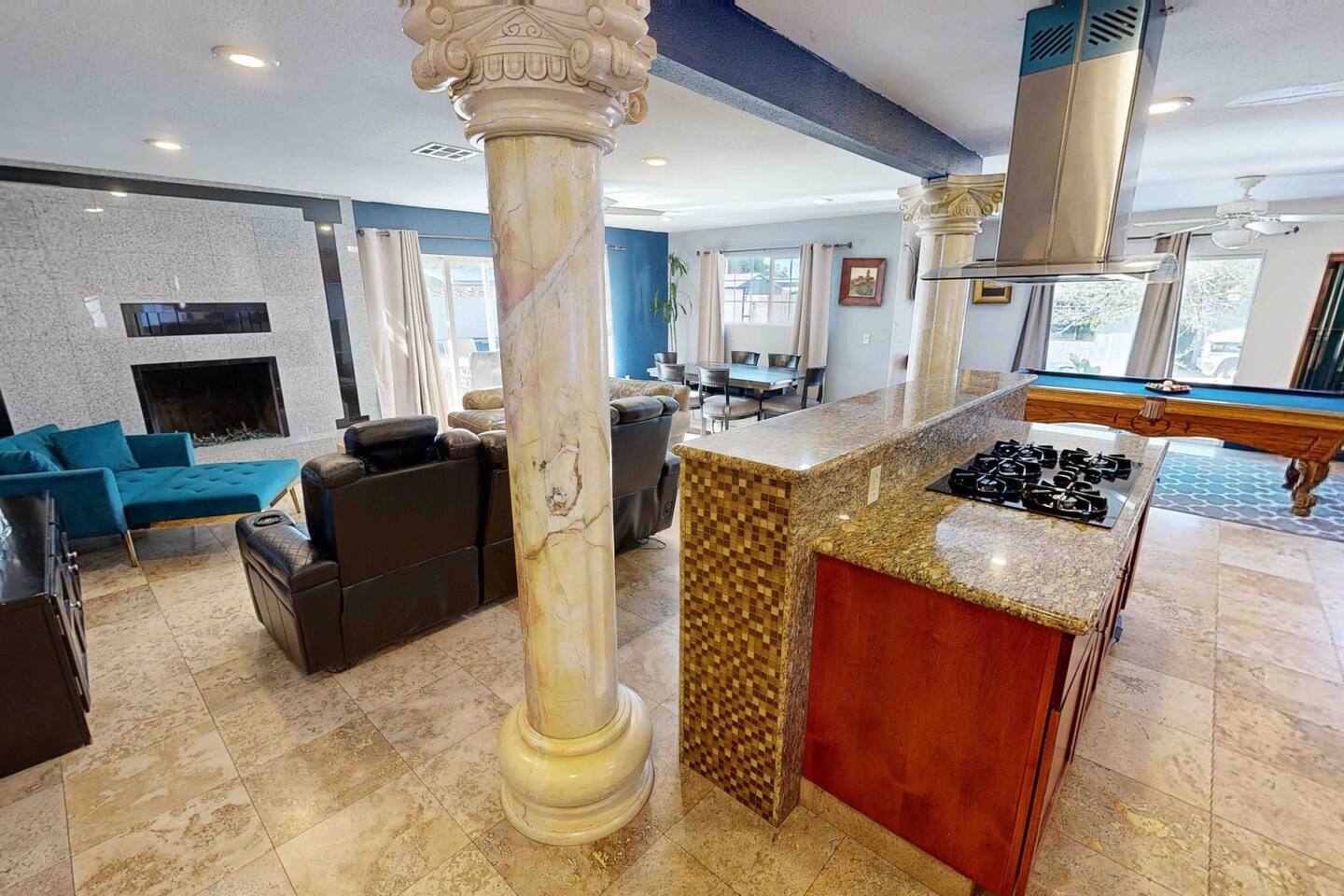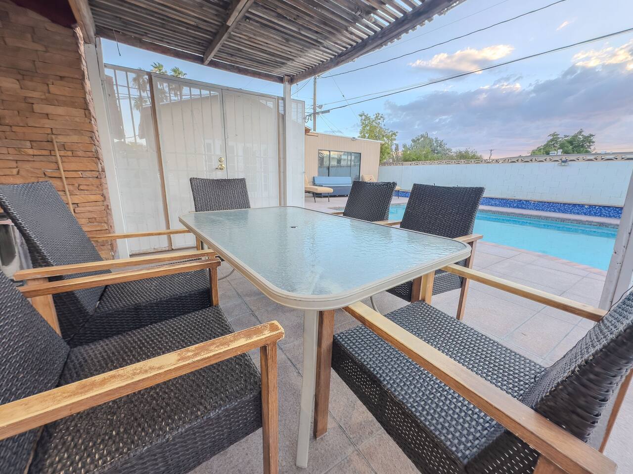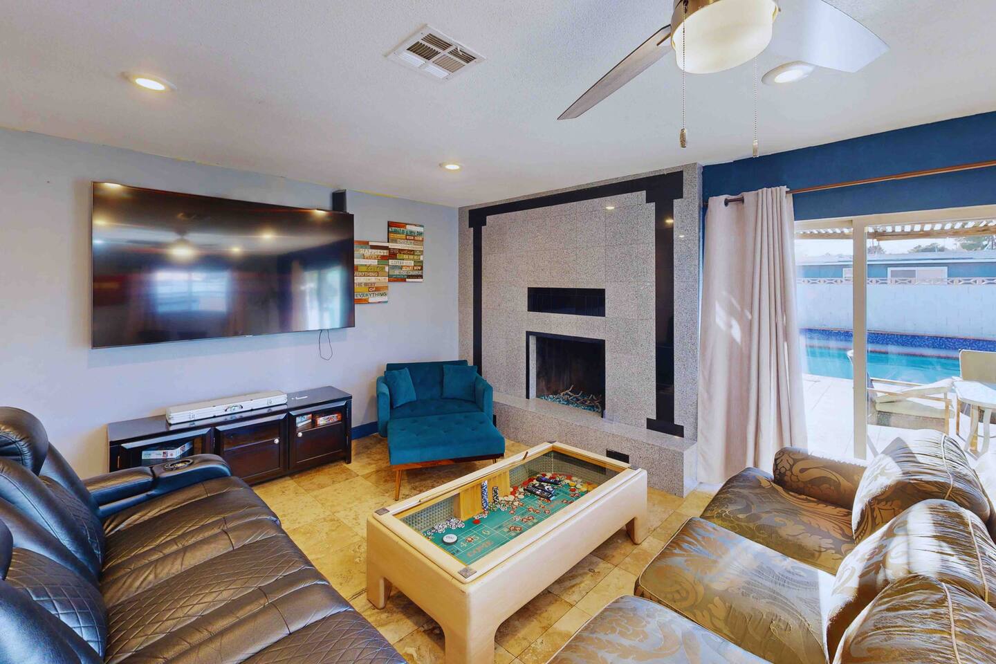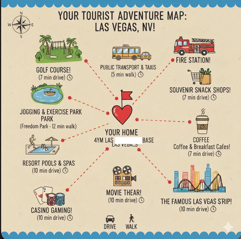 💗Welcome to the Oasis in the Desert💗 Nestled just minutes away from the heartbeat of Las Vegas, our spacious 2,027 sq. ft. sanctuary offers an unparalleled blend of tranquility and excitement, perfect for both relaxation and adventure. Immerse yourself in a vibrant setting that offers modern elegance combined with effortless comfort—all while being just a stone's throw from the hustle and bustle of the Strip. 💗The Space💗 ➡️ **Accommodations:** Spread across three thoughtfully designed bedrooms, which include a plush king bed, three queen beds, and two comfortable sleeper sofas, our home is ideally suited for groups and families. ➡️ **Private Bathrooms:** Each of the three bathrooms is equipped with premium amenities, ensuring convenience for all guests. ➡️ **Gourmet Experience:** The fully equipped kitchen, adorned with high-end appliances and kitchen essentials, paves the way for culinary exploration. ➡️ **Entertainment Hub:** Whether indoors with a game at the pool table or outside in the lavish backyard, entertainment is always at your fingertips. ➡️**Private Pool & Hot Tub:** Dive into your exclusive aquatic retreat, where the refreshing pool and soothing hot tub await. 💗Outdoor Haven💗 Step into a backyard that promises a delightful escape, featuring a private oasis complete with a BBQ setup for memorable dining experiences. Unwind around the fire pit or relax in the sun-drenched lounging area—perfect for those sunlit days and starry Vegas nights. 💗Location Perks💗 ➡️**Las Vegas Strip:** A mere 2 miles away, you're close enough to seize the energy yet retain peaceful seclusion. ➡️**Cultural Destinations:** The Arts District and Fremont Street offer a diverse mix of galleries, nightlife, and local vibes just minutes from your doorstep. ➡️**Natural Beauty:** A quick drive takes you to Red Rock Canyon, a stunning natural retreat for those who appreciate nature's wonders. 💗Guest Access💗 Experience complete access to the entire property, allowing you to fully indulge in all our amenities from the comfort of your private retreat. 💗Additional Notes💗 Please be aware that by using the pool and hot tub, you assume full responsibility—ensuring a safe and enjoyable experience as you soak up the Nevada sun. 💗Registration Details:💗 G62-09407 With key attractions just minutes away, begin your Las Vegas adventure here—a destination where memories are crafted under the dazzling desert sky. Welcome to your home away from home.